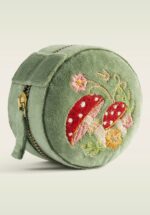 Organiseer je sieraadjes in stijl met dit mini juwelendoosje! Uitgevoerd in een zacht, groen stofje met de luxe look and feel van fluweel, voorzien van geborduurde paddenstoelen en bloemetjes met een ingewerkte glitterdraad. Dankzij de goudkleurige ritssluiting en handige binnenvakjes kan jij je favoriete ringen en oorbellen veilig opbergen ;-). * Mini juwelendoosje * Goudkleurige ritssluiting * Handige binnenvakjes * Fluweel * Geborduurd in India