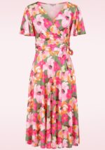 Topvintage exclusive ~ Irene Floral Cross Over swing jurk in kakigroen en roze