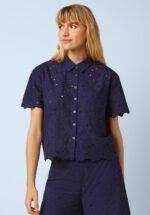 “When classic meets a little romance.” Deze beauty heeft een puntig kraagje, korte mouwen, een knopenreeks en een borstzakje aan de voorzijde. Ze is uitgevoerd in soepele en luchtige katoen (stretcht niet) in beacon blauw en is voorzien van een all-over opengewerkt broderie anglaise bloemenpatroon voor een elegante finishing touch. * Puntige kraag * Knopenrij * Korte mouwen * Voorzien van borstzakje * Lang genoeg om op een normale heupbroek te dragen * Maak je look compleet en combineer haar met de bijpassende Ethel Brava Broderie pantalon