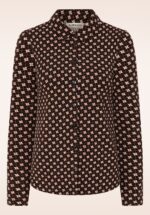 “Soft to wear, fun to flaunt!” Deze blouse heeft een klassiek model met puntige kraag en is veelzijdig, comfortabel én stijlvol – perfect voor elke dag. Ze is uitgevoerd in een soepele, zachte en elastische EcoVero viscosemix in zwart, voorzien van een grafische retroprint in warme bruintinten. * Puntig kraagje * Lange mouwen * Knopenrij * Lang genoeg om op een normale heupbroek te dragen