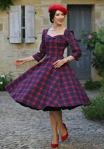 “Twirl into tartan magic!” Deze swing jurk brengt instant fifties flair in je garderobe! De klassieke rood-blauwe tartanprint, subtiele sweetheart halslijn en 3/4 pofmouwen geven haar een vrolijke, retro look. Handige zakken en een stevige maar soepele katoenmix maken haar comfortabel én perfect om elegant rond te draaien bij elke gelegenheid. * Swing jurk * Subtiele sweetheart halslijn * 3/4 pofmouwen * Voorzien van zakken! * Blinde ritssluiting aan de zijkant * Te combineren met een petticoat voor een extra feestelijk effect * Valt bij een lengte van 1,70 m over de knie