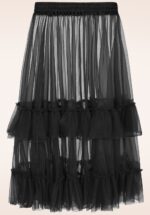 ”Behind every great twirl is a trusty petticoat!” Deze subtiele petticoat zorgt voor extra volume, beweegt gracieus met je mee en is afgezet met speelse ruches. Uitgevoerd in een zwarte tule stof en afgewerkt met een elastieken band. Deze petticoat geeft iedere swing jurk net dat beetje extra! * Geschikt voor al onze swing dresses en rokken * Elastische tailleband * Valt over de knie bij een lengte 1,70 m