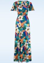 Gracie tropical maxi jurk in kobalt blauw en multi