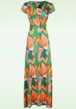 ”Can’t ‘leaf’ this one hanging!” Macie heeft een V-halslijn met flatterende plooitjes aan de voorzijde, korte kapmouwtjes en loopt uit in een luchtige en flowy maxi rok. Uitgevoerd in een glad en soepel, licht glanzend, stretchy, slinky stofje met een kleurrijke print van bladeren, dat garant staat voor veel kreukvrij draagplezier. * Maxi jurk * V-halslijn * Korte kapmouwtjes * Gevoerde top voor extra comfort * Plooitjes aan de voorzijde * Geen rits of knopen; aantrekken en ready to go! * Reikt bij een lengte van 1,70 m tot aan de grond