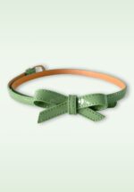 Deze cutie heeft ons weten te strikken! Het schattige strikje op deze smalle ceintuur kun je makkelijk verplaatsen (of eraf halen) waardoor je eindeloos kunt blijven variëren ;-). Daarnaast is ze uitgevoerd in saliegroen imitatie lakleder en afgewerkt met een elegant goudkleurig gespje. * Afneembaar en verplaatsbaar strikje * Goudkleurige gesp