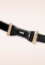Maak je retro look helemaal af met deze 60s Summer Love Bow Belt! Classy of speels… met dit prachtige riempje zit je altijd goed! Uitgevoerd in shiny zwart ‘faux’ leder met een eye-catching strik in zwart en goud. Dit schatje mag niet in jouw kledingkast ontbreken! * Strik van goudkleurig metaal * Verstelbaar