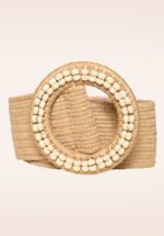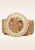 ”Bohemian flair!” Geef die ene maxi jurk of flared jeans een extra boho touch met deze raffia riem! Deze gevlochten elastische riem in zand is voorzien van een goudkleurige glitterdraad, heeft een ronde, rotan gesp en kan lager op de heup, of juist hoger in de taille gedragen worden. * Kan zowel in de taille, als op de heup gedragen worden * 5 cm breed * Verstelbaar (one size)