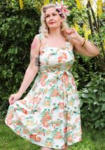 ”Aloha state of mind!” Deze prachtige swing beauty Kiana brengt je regelrecht naar de zomer! Ze heeft een gevoerde top met decoratieve houten knopen en loopt vanaf de taille uit in een flowy swing rok. Ze is uitgevoerd in een iets dikkere maar soepele en stretchy, witte crêpe achtige stof die heerlijk draagt, niet kreukt en voorzien is van een prachtige tropische Hawaï print. * Swing model * Gevoerde top met decoratieve houten knopen * Riemlusjes met afneembaar striklint * Blinde rits achterzijde * Valt bij een lengte van 1.70 m over de knie * Let op; de kleur van het product op video kan afwijken van de daadwerkelijke kleur van het product