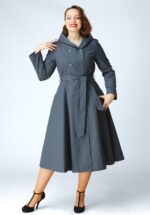 “Stay dry, stay chic.” Anna is exclusief bij Topvintage verkrijgbaar en niet alleen prachtig om te zien, maar houdt je ook nog eens heerlijk droog. Ze is uitgevoerd in een luxueuze, ietwat dikkere en stevige waterafstotende stof (stretcht niet) in elegant leiblauw en volledig gevoerd voor extra comfort. * Swing model * Waterafstotend * Vaste capuchon * Dubbele knopenrij * Geheel gevoerd * Voorzien van zakken! * Afneembaar striklint voor een ‘snatched’ taille * Valt bij een lengte van 1,70 m over de knie * Exclusief bij Topvintage verkrijgbaar