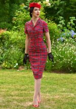 Checked, classy, and always on point!” Straal in deze charmante pencil jurk met klassieke tartan ruit. Ze heeft een chique reverskraag, korte mouwen en een afneembare matching riem die de look helemaal afmaakt. Uitgevoerd in een stevige maar soepel vallende rode katoenmix, die comfortabel draagt en perfect is voor zowel dagelijkse looks als feestelijke gelegenheden. Een retro-geïnspireerde must-have die je garderobe een speelse, stijlvolle twist geeft. * Pencil jurk * Revers kraag * Knopenreeks voorzijde * Korte mouwtjes * Afneembare riem, voor een extra ‘snatched’ taille * Barinovael is 1,67 m: haar pumps en accessoires zijn haar eigen treasures