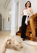 ”You can’t have a bad day in polka dots!” Is Gwyneth geen dotje?! Het lijfje is voorzien van een speelse roezel over de schouder, in de taille heeft ze een afneembaar striklint, zodat deze extra geaccentueerd wordt en door de lange wijde pijpen lijken je benen eindeloos lang! Ze is uitgevoerd in een iets dikkere maar soepele, crêpe achtige stof voorzien van een fijne stretch, voor een comfortabel draagcomfort. * Jumpsuit * Mouwloos * Voorzien van speelse roezel * Afneembaar striklint, voor een extra ‘snatched’ taille * Blinde rits achterzijde * Lange, wijde pijpen * Ons prachtige model Ava is 1,69 m