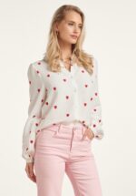 ”All is love and love is all!” ‘Deze blouse is uitgevoerd in een luchtige, witte 100% katoen met wafelstructuur en rode geborduurde hartjes waardoor ze heerlijk comfortabel draagt. * Loose-fit model * Puntig kraagje * Knoopsluiting * Lange wijde pofmouwen * Lang genoeg om op een mid-waist broek te dragen