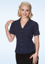 Deze 50s Pointelle Bow Top in Steal Blue is er eentje om verliefd op te worden! Nee, dit is geen illusie… deze prachtige top is een droom die uitkomt! De top heeft een mooie ronde halslijn met een speelse strik en 3/4 mouwtjes, cute! Uitgevoerd in een heerlijk soepele, stretchy, fijngebreide, staalblauwe viscosemix met een klassiek opengewerkt patroon. Een veelzijdige top die niet mag ontbreken in de kast van een echte vintage lady! * Ronde halslijn * Vaste strik * 3/4 mouwtjes * Stretchy ribboorden * Lang genoeg om op een normale heupbroek te dragen