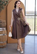 “Vintage charm, main-character energy.” Deze wikkel jurk heeft een puntige reverskraag, een afneembare riem in de taille en loopt uit in een prachtige swing rok voor een super vrouwelijk silhouet. Uitgevoerd in een stevige, maar soepele bruine katoen-linnenmix (stretcht niet) met all-over polkadot print. * Wikkeljurk * Swing * V-halslijn met reverskraag * Mouwloos * Onzichtbare knoopsluiting * Afneembare riem * Zijwaartse steekzakken * Valt bij een lengte van 1,70 m ruim over de knie * @lovisladouce is 1,72 m * Let op; de kleur van het product op de video kan afwijken van de daadwerkelijke kleur van het product