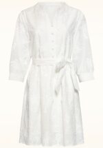 “Feeling palm-tastic today!” Deze witte a-lijn jurk is een frisse, zomerse must-have! Ze heeft een losse, comfortabele fit, 3/4 wijde pofmouwen en functionele knopen aan de voorzijde. De geborduurde palmbomen geven haar een speelse tropical twist en doordat ze is uitgevoerd in 100% katoen, draagt ze heerlijk luchtig en ademend. * V-hals * Knopenreeks * Gevoerd * 3/4, wijde pofmouwen * Afneembaar striklint, voor een extra ‘snatched’ taille * Valt bij een lengte van 1,70 m boven de knie