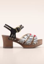 “Zebra stripes, sunny vibes.” Retro klompjes met een blokhak en een plateauzool van hout. Ze zijn handgemaakt van hoogwaardig leder/suède met een zebraprint, een zwart verstelbaar enkelbandje en een metallic rood detail op de wreef. * Handgemaakt in Portugal * Hoge kwaliteit leder/suède (binnen- en buitenkant) * Verstelbaar enkelbandje * Goudkleurig gespje * Blokhak * Plateauzool * Rubberen anti-slip zool * Het natuurlijke materiaal hout is ademend, hygroscopisch en extreem duurzaam. Het absorbeert schokken en beschermt de voetzolen.
