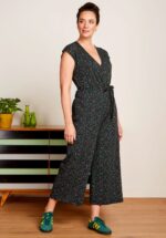 ‘You’ll jump for joy’ in deze Mary Elysee Jumpsuit! Mary heeft een classy overslag top en is geschikt voor zowel een vollere als een bescheiden buste. Ze heeft een afneembare strikband die je taille mooi accentueert en wijde culotte pijpen. Ze is uitgevoerd in een soepele en stretchy, zwarte bio katoenmix met een schattige bloemenprint, die heerlijk draagt. * Overslag top * Afneembare striklint, voor een extra ‘snatched’ taille * Geen rits of knopen; aantrekken en ready to go! * Wijde pijpen (culotte)