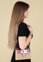 Opal Rattan Crossbody tas in beige en metallic roze