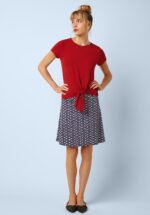 ”Perfect skirt alert!” Op zoek naar hét perfecte rokje? 😉 Of je nu brede heupen hebt of juist niet, dit korte rokje is super flatterend voor je figuur. Ze is uitgevoerd in een soepele en stretchy, donkerblauw EcoVero viscosemix, voorzien van een grafisch retro printje. * A-lijn model * Brede band die zowel in de taille als op de heup gedragen kan worden * Geen rits of knopen; aantrekken en ready to go! * Valt bij een lengte van 1,70 m boven de knie