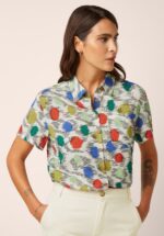 “Graphic prints, good moods.” Deze blouse is een echte mood booster! Ze heeft een puntig kraagje, korte mouwen, een charmante knopenreeks en een borstzakje voor die nonchalante finishing touch. Ze is uitgevoerd in een soepele en luchtige katoen-/viscosemix (stretcht niet) in crème, voorzien van een kleurrijke grafische retroprint die elke outfit instant karakter geeft. * Loose-fit * Puntige kraag * Knopenrij * Korte mouwen * Voorzien van borstzakje * Lang genoeg om op een normale heupbroek te dragen