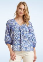 ”Find your inner boho babe and let her shine!” Boho babe Marley heeft een losse pasvorm, elegante V-halslijn en speelse 3/4 pofmouwen met elastiek. Ze is uitgevoerd in witte 100% katoen, waardoor de heerlijk luchtig en comfortabel draagt. Bovendien is ze afgewerkt met prachtig opengewerkt broderie anglaise patroon in kobalt blauw. * Loose-fit model * V-hals * 3/4, wijde pofmouwen met elastiek * Lang genoeg om op een normale heupbroek te dragen