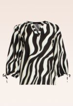 ”Call of the wild!” Deze flowy blouse met zebra print heeft een flatterende V-hals en een losse pasvorm die zorgt voor een relaxed en stijlvol uiterlijk. Ze is perfect voor de warmere dagen dankzij de soepele en luchtige viscosemix (stretcht niet). * Loose-fit model * V-hals * 3/4, wijde pofmouwen met vaste strikbandjes * Lang genoeg om op een normale heupbroek te dragen