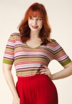 “Good vibes come in colorful stripes.” Deze vrolijke knitted cutie brengt instant happiness in je outfit! Ze heeft een flatterende V-halslijn, korte mouwen en een speels gestreept patroon in verschillende kleuren dat letterlijk elke look opfleurt. Uitgevoerd in een fijngebreide, zachte en soepelvallende katoen/- viscosemix die heerlijk comfortabel draagt. * V-halslijn * Korte mouwen * Lang genoeg om op een normale heupbroek te dragen
