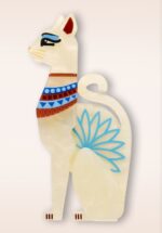 ”Felines may be much adored in the 21st century, but the divine Bastet set the trend, having been worshipped for her powers of protection since ancient times.” * Online in Nederland, Duitsland en België exclusief bij Topvintage verkrijgbaar * Handgemaakt, handbeschilderd en uitgevoerd in verschillende lagen hars * Zilverkleurige pinsluiting * Bij aankoop van 2 of meer items uit deze ‘Fan Favourites’ collectie ontvang je een surprise broche cadeau (zolang de voorraad strekt!) * Original design by Halena Lloyd