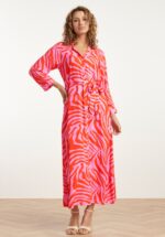 ”Roaming with the wild!” Met deze Zoe jurk creëer je in een handomdraai een vrouwelijk silhouet door de afneembare matching strikband in de taille. Uitgevoerd in een heerlijk soepel en luchtig stofje (stretcht niet) met en oranje/roze zebra print. * Maxi blouse jurk * Puntig kraagje * Knopenrij * Lange mouwen met manchetten * Afneembare strikband voor een extra ‘snatched’ taille * Splitjes aan de zijkanten * Geen rits * Valt bij een lengte van 1,70 m tot de enkel