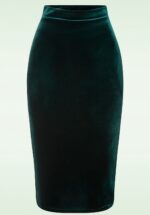 Met deze sexy en stijlvolle 50s Glendie Velvet Pencil Rok in Flessen Groen ben je helemaal party-proof! Dit model sluit prachtig aan waardoor jouw rondingen perfect worden benadrukt. Uitgevoerd in een stretchy, donkergroene fluwelen stof die je rondingen prachtig benadrukt zonder af te tekenen. Deze rok komt wel met een waarschuwing; ze is namelijk hot, hot hot! * Aansluitend taillemodel * Geen rits of knopen * Geen split * Valt bij een lengte van 1,70 m over de knie * Exclusief bij Topvintage verkrijgbaar