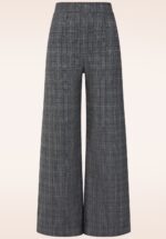 âPower dressing in perfect checks.â Dit high waist model is voorzien van lange wijde broekspijpen en is uitgevoerd in een stevige maar stretchy, grijze stof voorzien van een ruitje in beige en blauw, die verrassend comfortabel draagt. * Flatterende hoge taille * Blinde rits achterzijde * Lange, wijde pijpen * Exclusief bij Topvintage verkrijgbaar