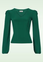 Topvintage exclusive ~ Juno top met pofmouwen in bosgroen