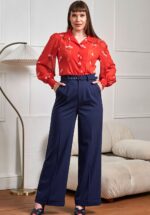 Deze elegante pantalon heeft een vrouwelijke high-waist pasvorm met een afneembare riem die je taille prachtig accentueert. De zijwaartse steekzakken geven haar een nonchalante, maar stijlvolle touch, terwijl de wijde, rechte pijpen zorgen voor een modern en flatterend silhouet. Ze is uitgevoerd in een soepelvallende, luchtige stofmix met een vleugje viscose in marineblauw (stretcht niet), waardoor ze heerlijk draagt en perfect is voor zowel een classy als casual look. * Hoge taille * Rits- en knoopsluiting * Afneembare riem * Zijwaartse steekzakken * Wijde, rechte pijpen met vaste omslagjes