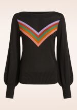 “Audrey and you will be so happy together! ;-)” Deze beauty heeft een elegante boothals, lange bisschopsmouwen en strepen aan de voorzijde in retro seventies kleuren. Ze is uitgevoerd in een zachte en stretchy, zwarte EcoVero viscose, welke een milieuvriendelijkere variant is en onder betere en veiligere arbeidsomstandigheden geproduceerd wordt. * Boothals * Lange bisschopsmouwen * Stretchy ribboorden * Lang genoeg om op een normale heupbroek te dragen