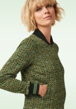 “Get your groove on… seventies style!” Dit korte jack bewijst dat stoer en sparkly met gemak samen gaan. De bloemenprint met groene accenten wordt extra opvallend door de subtiel ingewerkte gouden glitterdraad — voor een vleugje glam met retro flair. De drukknopen en elastische boorden geven haar die kenmerkende look, terwijl de zachte, stevige stofmix met lichte stretch zorgt voor een perfecte fit en heerlijk draagcomfort. Draag haar als jasje of open als vestje voor een look die net zo groovy is als jij! * Ronde halslijn met omslag kraagje * Lange mouwen * Steekzakjes * Drukknoopjes * Stretchy ribboorden