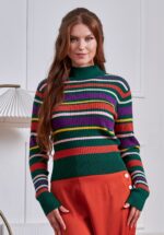 ”Wear stripes of every stripe!” Deze comfy jumper is uitgevoerd in een zachte, fijngebreide en stretchy gestreepte viscosemix. Of je haar nu met een broek of een rok combineert, ze is altijd de juiste keuze! * Opstaand kraagje * Lange mouwen * Stretchy ribboorden * Lang genoeg om op een normale heupbroek te dragen