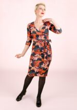 Topvintage exclusive ~ Kamila floral pencil jurk in zwart en multi
