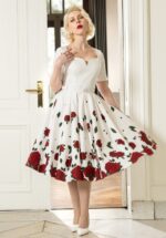 Topvintage exclusive ~ The Ella Rose swing jurk in wit