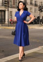 Topvintage Exclusive ~ The Glenda swing jurk in koningsblauw