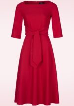 ”She walked like a secret, dressed like a headline!” Deze flirty A-lijn beauty is ontworpen door onze eigen in-house ontwerpers en is een ode aan tijdloze elegantie, geïnspireerd door de iconische stijl van Ava Gardner en haar ongedwongen charme in de film ‘Barefoot Contessa’ uit 1954. Uitgevoerd in een scarletrode, stevige, high quality stof met een hele lichte stretch waardoor Juliana een genot is om te dragen. “Red, like the Diva she is, impossible to ignore.” * A-lijn * 3/4 mouwtjes * Gevoerde top * Brede, vierkante halslijn * Bra strap holders zodat je bh bandjes niet gaan schuiven * Vaste strikbanden voor een extra ‘snatched’ taille * Blinde rits aan de achterzijde * Gorgeous Julia Fiore (Fiorevanil) is 1,70 m; haar accessoires zijn haar eigen vintage treasures * Let op; de kleur van het product op de video kan afwijken van de daadwerkelijke kleur van het product