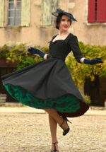 ”It’s better to be looked over than overlooked!” Goedkeurende blikken, openvallende monden en verdraaide nekken… dat is wat je kunt verwachten als je deze Vivienne swing jurk in bordeauxrood draagt! Dit najaar hebben onze getalenteerde in-house designers zich laten inspireren door de stijl en de charismatische actrices uit ‘Film Noir’ en ‘Technicolor’ movies uit de jaren 40, 50 en 60! Vivienne is een flirty swing jurk, uitgevoerd in een stevige maar toch soepele bordeauxrode stof met zwarte accenten en een hele lichte stretch voor een fabulous fit, oh la la! Are you ready to cause a ‘scene’ Hunnie? * Full-swing model: kan gecombineerd worden met een petticoat * Ronde halslijn met V-uitsparing * 1/2 mouwtjes met puntige omslagjes * Gevoerde top * Bra strap holders zodat je bh bandjes niet gaan schuiven * Steekzakjes * Afneembaar, stoffen riempje * Blinde rits aan de achterzijde * Gorgeous PinUp model Sarah Palmer (Pinup Palmer): haar pumps en accessoires zijn haar eigen treasures