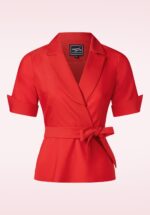 ”Behind every successful woman is herself, making things happen like a true boss!” Ook dit seizoen voorzien onze in-house designers ons weer van draagbare en klassieke items met een hypervrouwelijk silhouet voor alle ”Power Women”. Classy and versatile Veronika is licht getailleerd, heeft het comfort van een top en is uitgevoerd in een stevige, maar toch soepele rode stof met een hele lichte stretch, waardoor ze heerlijk comfortabel draagt! * Top in blouse stijl * Kraag * Licht getailleerd * Vaste overslag * Gevoerd bij de buste * Korte mouwtjes met puntige omslagjes * Blinde rits in de zijnaad * Afneembare stoffen riem, voor een extra ‘snatched’ taille * Lang genoeg om op een normale heupbroek te dragen * Gorgeous Sylvana van Schaik is 1,65 m: haar pumps en accessoires zijn haar eigen treasures