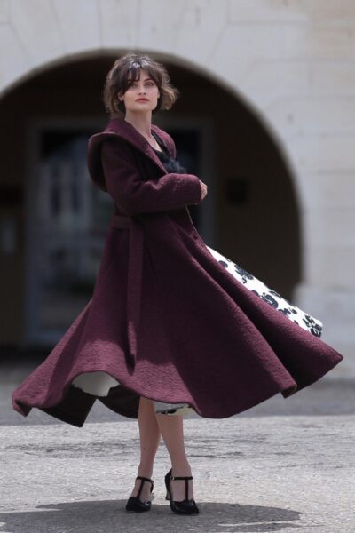”The perfect addition to your winter wardrobe!” Anna is niet alleen prachtig om te zien, maar ze houdt je ook nog eens heerlijk warm! Ze is uitgevoerd in een luxueuze, ietwat dikkere en zachte, aubergine bouclé stofje (stretcht niet) en is volledig gevoerd voor extra comfort. * Swing model * Vaste capuchon * Dubbele knopenrij * Geheel gevoerd * Voorzien van zakken!  * Afneembaar striklint voor een ‘snatched’ taille * Gorgeous influencer Mina Mahta is 1,70 m: haar accessoires en pumps zijn haar eigen vintage treasures * Exclusief bij Topvintage verkrijgbaar