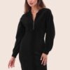 Jessy Bomber Style gebreide velours jurk in zwart