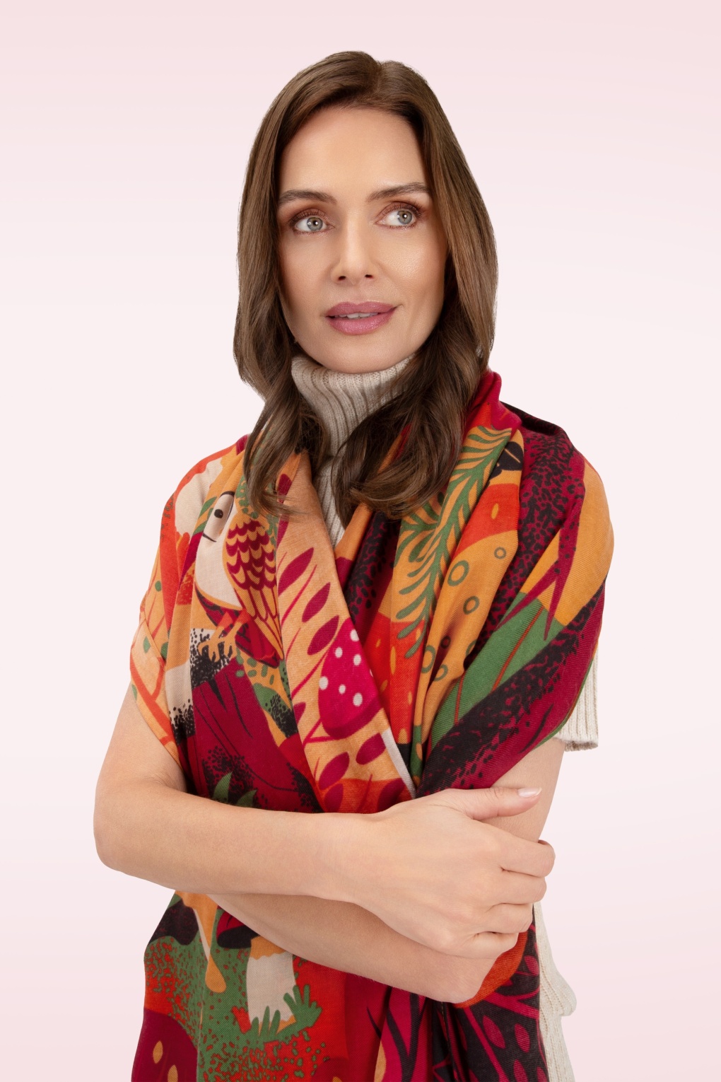 Met deze veelzijdige sjaal fleur je elke grauwe dag op! Uitgevoerd in soepele stof met een prachtige, kleurrijke bosdieren print. Wikkel haar een, of meerdere keren om je hals en trotseer die iets frissere dagen!   * Rechthoekig model