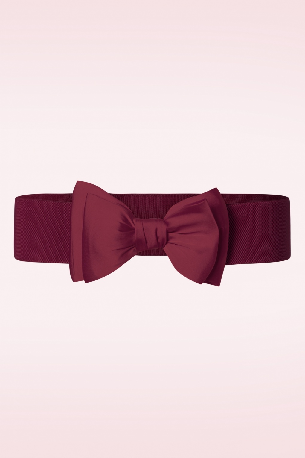 Deze brede stretch riem in bordeauxrood met satijnachtige strik is een aanvulling op elke outfit en creëert een mooi gedefinieerd silhouet, oh la la!   * Vaste strik * Sluit d.m.v. 2 drukknoopjes