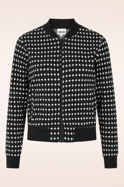 “Meet your new best friend!” Dit korte college jack met handige ritssluiting en lange mouwen bewijst dat stoer en classy perfect samengaan. Het sterrenpatroon geeft haar een chique uitstraling, terwijl de elastische boorden zorgen voor een sporty touch. Uitgevoerd in een zachte, soepele en stretchy fijngebreide biologische katoenmix die heerlijk draagt. * College jack * Lange mouwen * Steekzakjes * Ritssluiting voorzijde  * Stretchy ribboorden  * Maak je look compleet en combineer haar met de bijpassende Relaxed Rhythm broek in zwart en wit