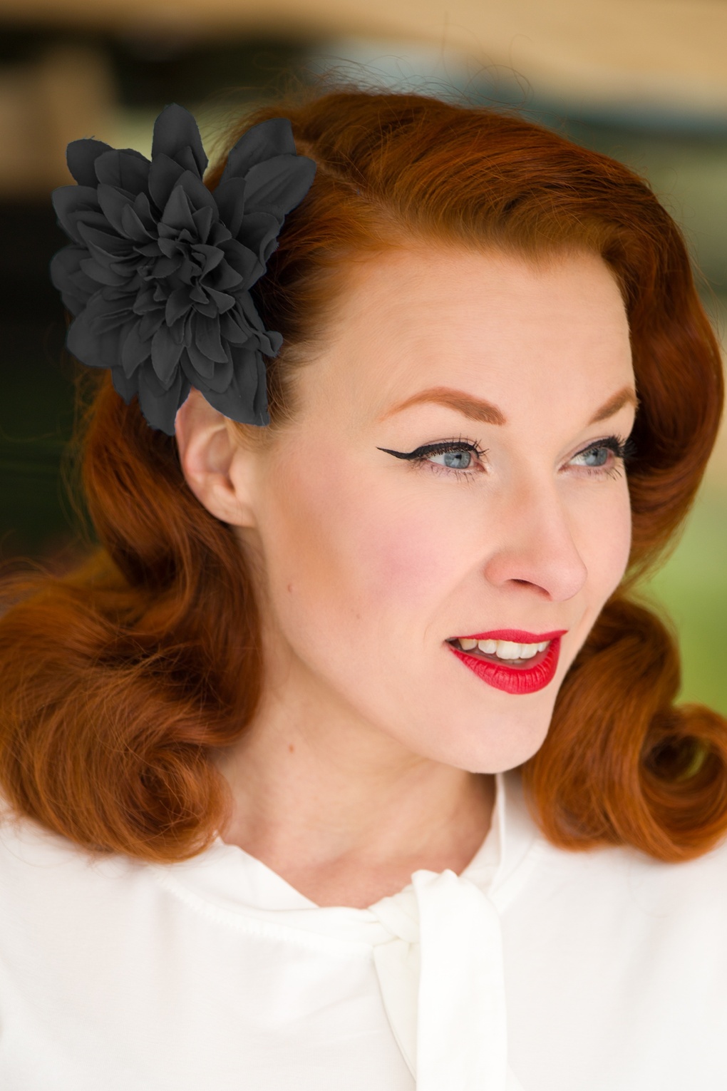Deze 50s Flower Hair Clip & Brooch zorgt voor een pittig Flamenco tintje in je garderobe! Een elegante, zwarte bloem die je in je haar kunt dragen, maar ook als broche om een topje op te leuken, win-win 😉 De stoffen bloem is bevestigd op een zilverkleurige metalen clip en ook voorzien van een speldje. Een echt must-have accessoire!   * Clip- en speld sluiting