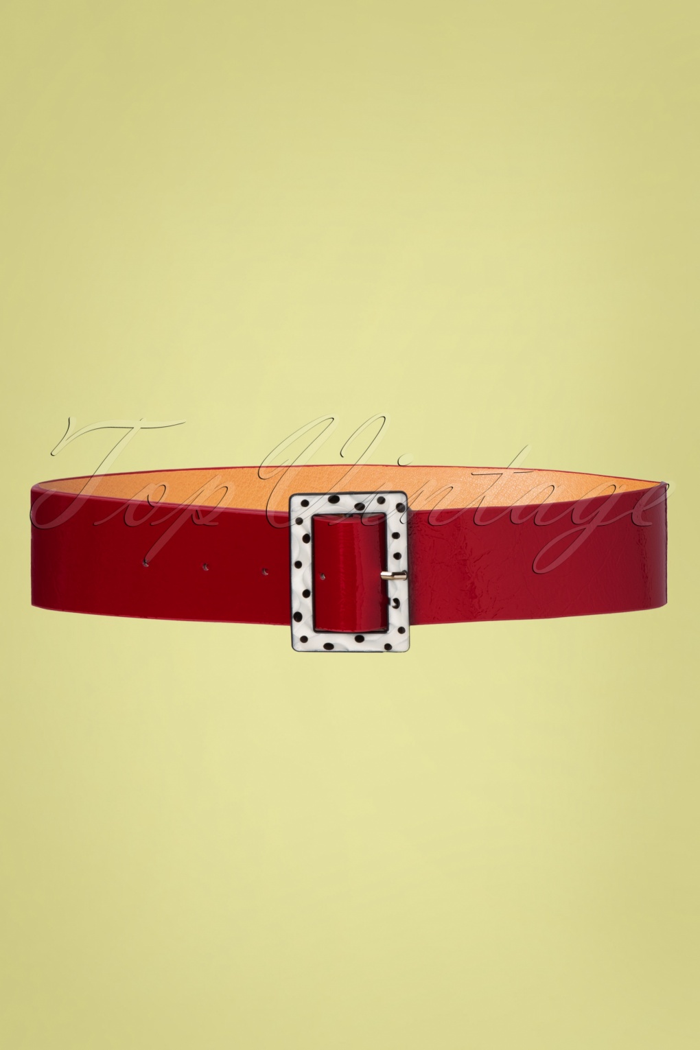 Deze 50s Chenelle Belt in Red is een geweldige aanvulling voor je vintage garderobe en creëert een wespentaille in een handomdraai! Dit rode prachtexemplaar heeft een kunststof gesp in wit met zwarte dots. Uitgevoerd in ‘faux’ lakleder voor een onweerstaanbare fifties touch 😉 Geweldig in combinatie met onze jurken, rokken en broeken!   * Tailleriem * Verstelbaar * Stevige, rechthoekige gesp