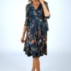 Vrouwelijk en flirty deze 50s Ruby Swing Dress! Wow, wat een schoonheid! Deze vintage geïnspireerde beauty heeft een elegante diamantvormige halslijn, een brede tailleband en flatterende plooitjes die sierlijk doorlopen naar de buste. De semi-swing rok in combinatie met de aansluitende top geeft jou een super vrouwelijk fifties silhouet. Uitgevoerd in een stretchy donkerblauw stofje dat heerlijk draagt. Dit jurkje zal je hart veroveren, en niet alleen die van jou… 😉   * Semi-swing model * Diamantvormige halslijn * 3/4 mouwen * Blinde rits achterzijde * Onze black beauty Ava is 1,69 m * De afgebeelde oorbellen zijn niet meer verkrijgbaar in onze shop